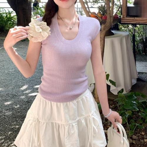 심플 코지 라운드 캡소매 니트탑 WFKPGF3