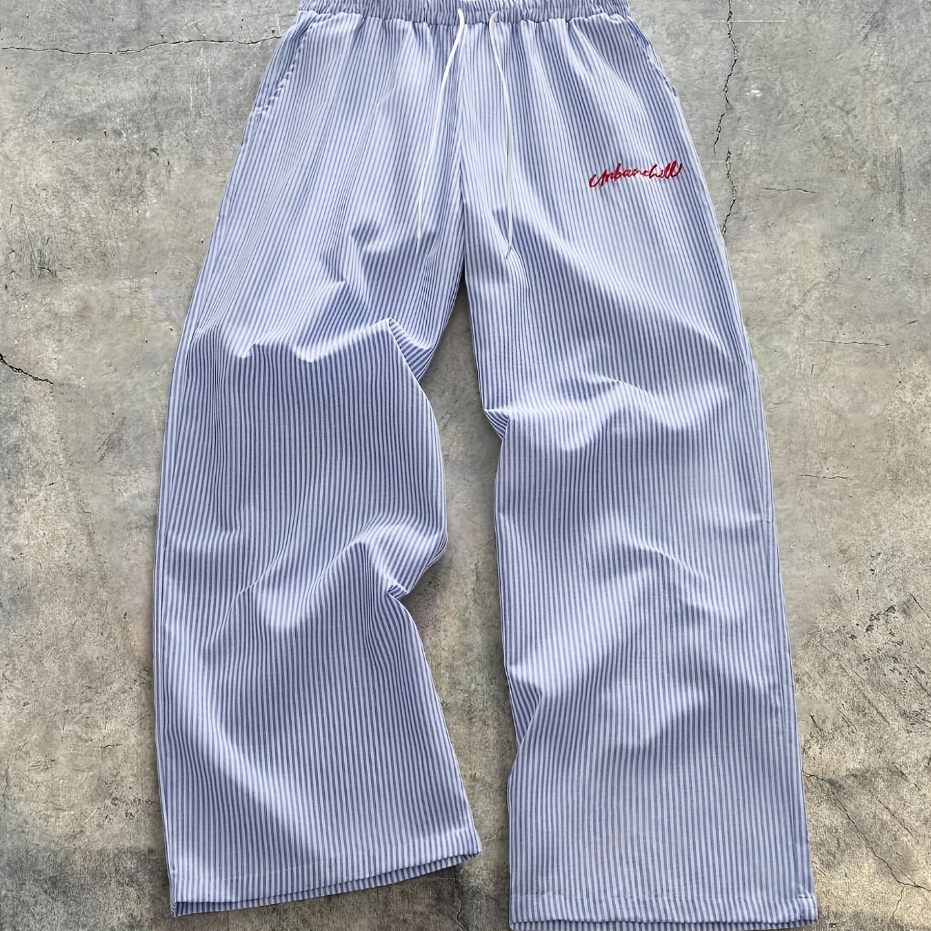 TEMU 남성용 가볍고 통기성 좋은 캐주얼 스트레이트핏 팬츠 - 탄력성 AB 허리 (자수) - 루즈핏 바지, 야외 및 홈웨어용 - 손세탁 가능한 논스트레치 팬츠