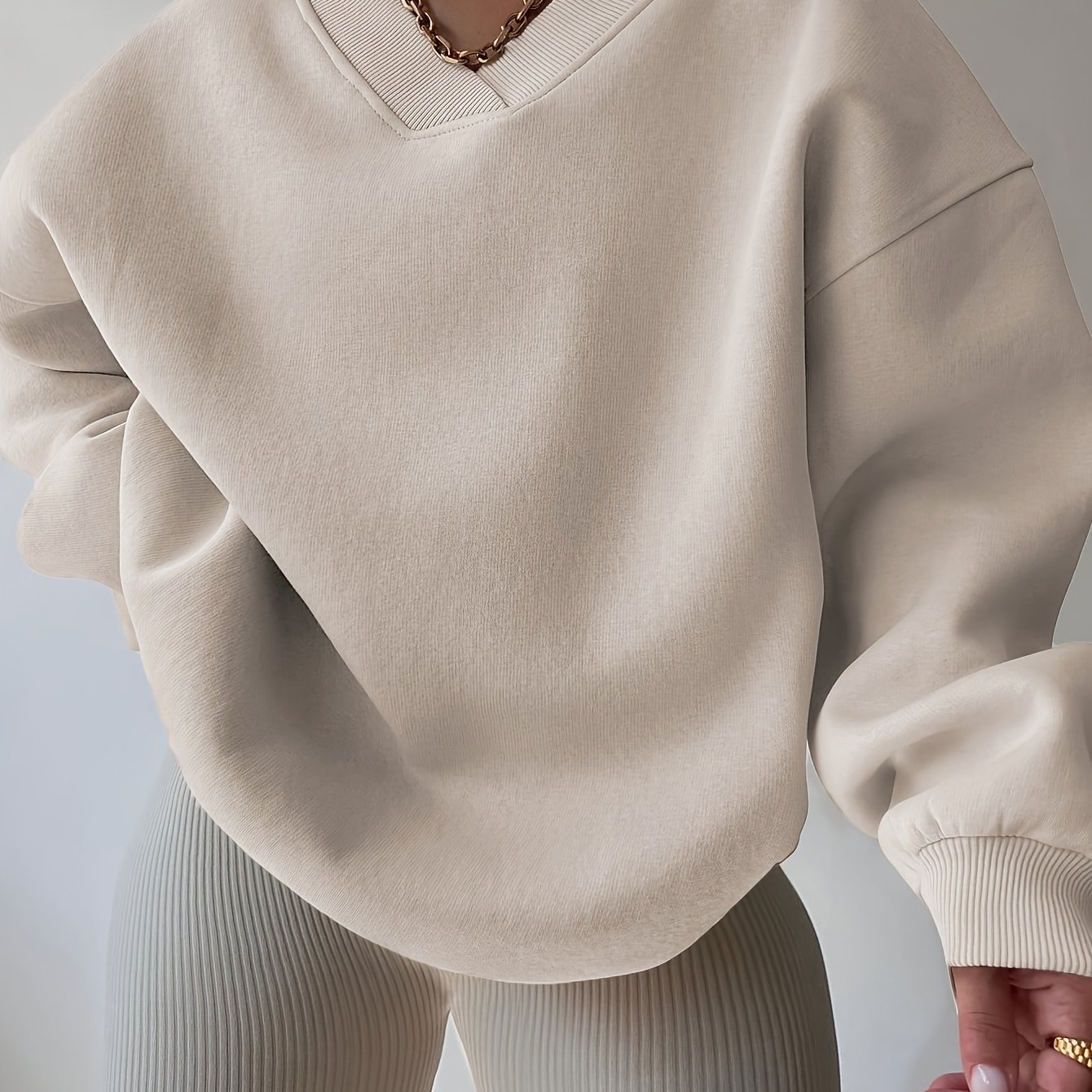 TEMU 여성용 캐주얼 V넥 긴팔 풀오버 스웨트셔츠 - 솔리드 컬러 기계 세탁 가능 가을 겨울 따뜻한 코지 의류, 일상 필수 아이템, 귀여운 스웨트셔츠, 편안한 핏 탑, 아늑한 소재