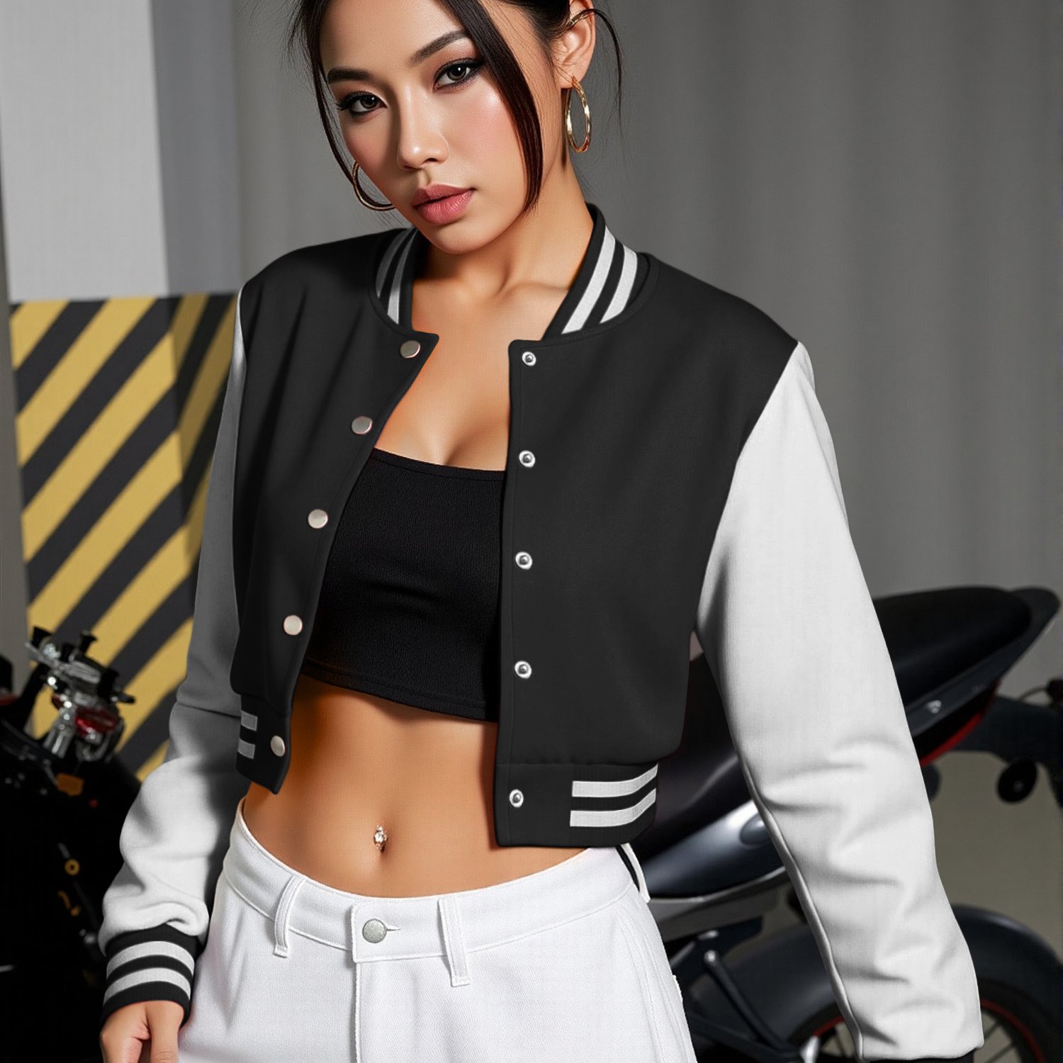 TEMU 여성 컬러 블록 숏 버튼업 재킷, 캐주얼 긴팔 아우터, 가을/겨울 야구 스타일 탑 - W13