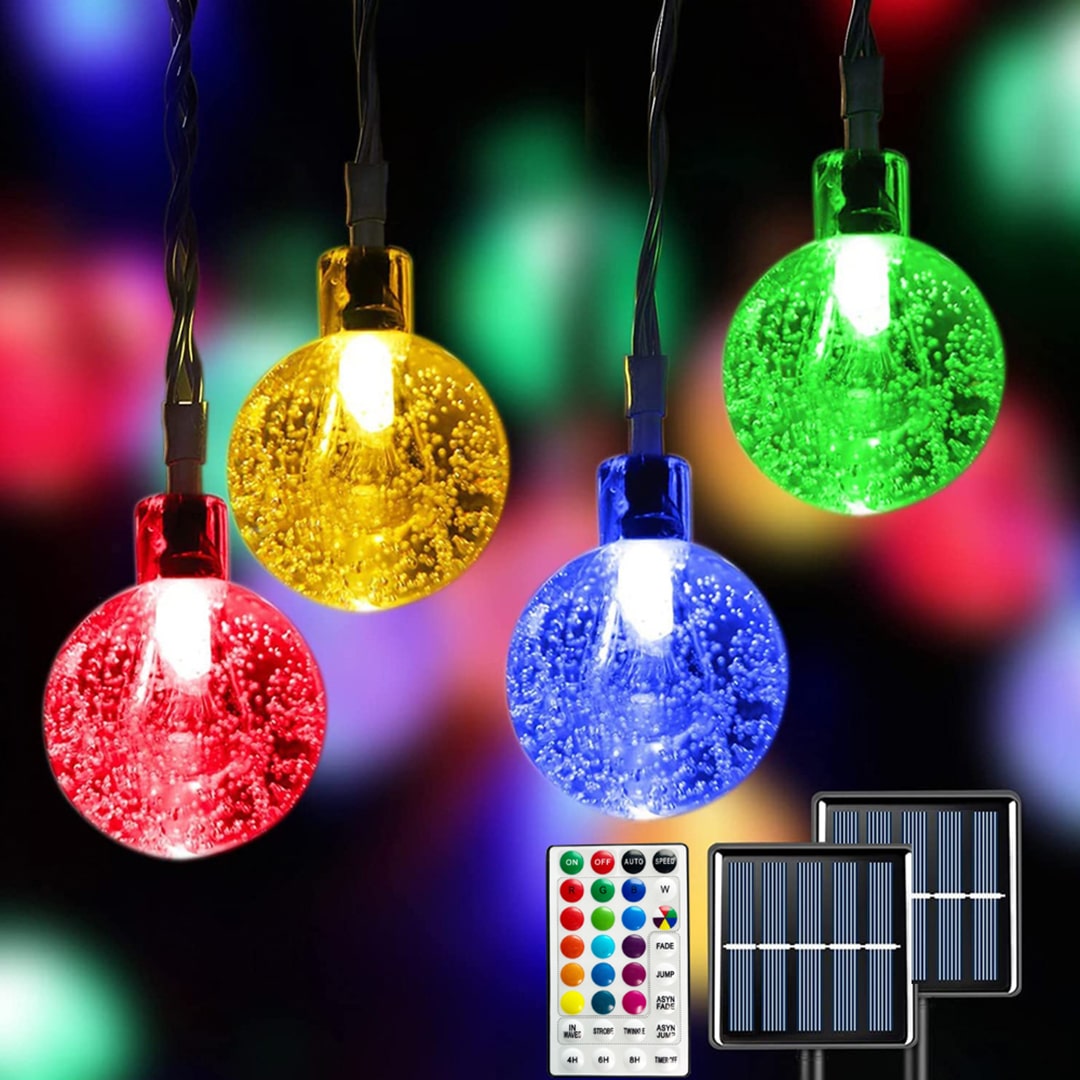 태양광 버블 앵두 트리등 야외 캠핑 감성 LED 줄 조명 50구 전구색 노란빛