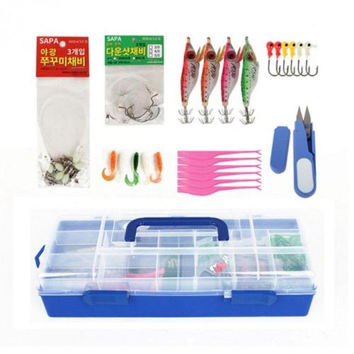 [SAPA]싸파 올라운드 루어채비 19종세트 태클박스포함 (스푼 웜 지그헤드 미노우)..