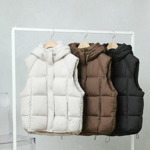 [옷자락] 여자 겨울 터틀넥 후드 베스트 따뜻한 조끼 퀄팅 패딩
