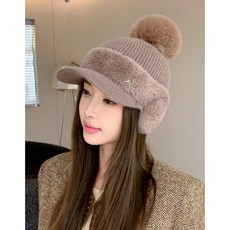 [방울 니트 방한모] 폭신퍼 귀달이 챙모자 / 털방울 퍼캡 / 한겨울 방한 니트모자