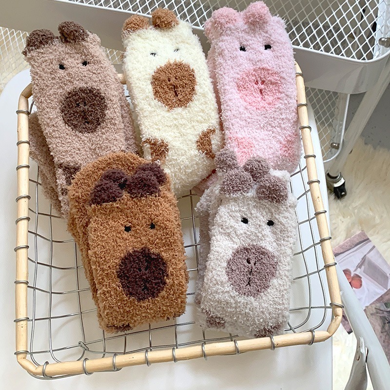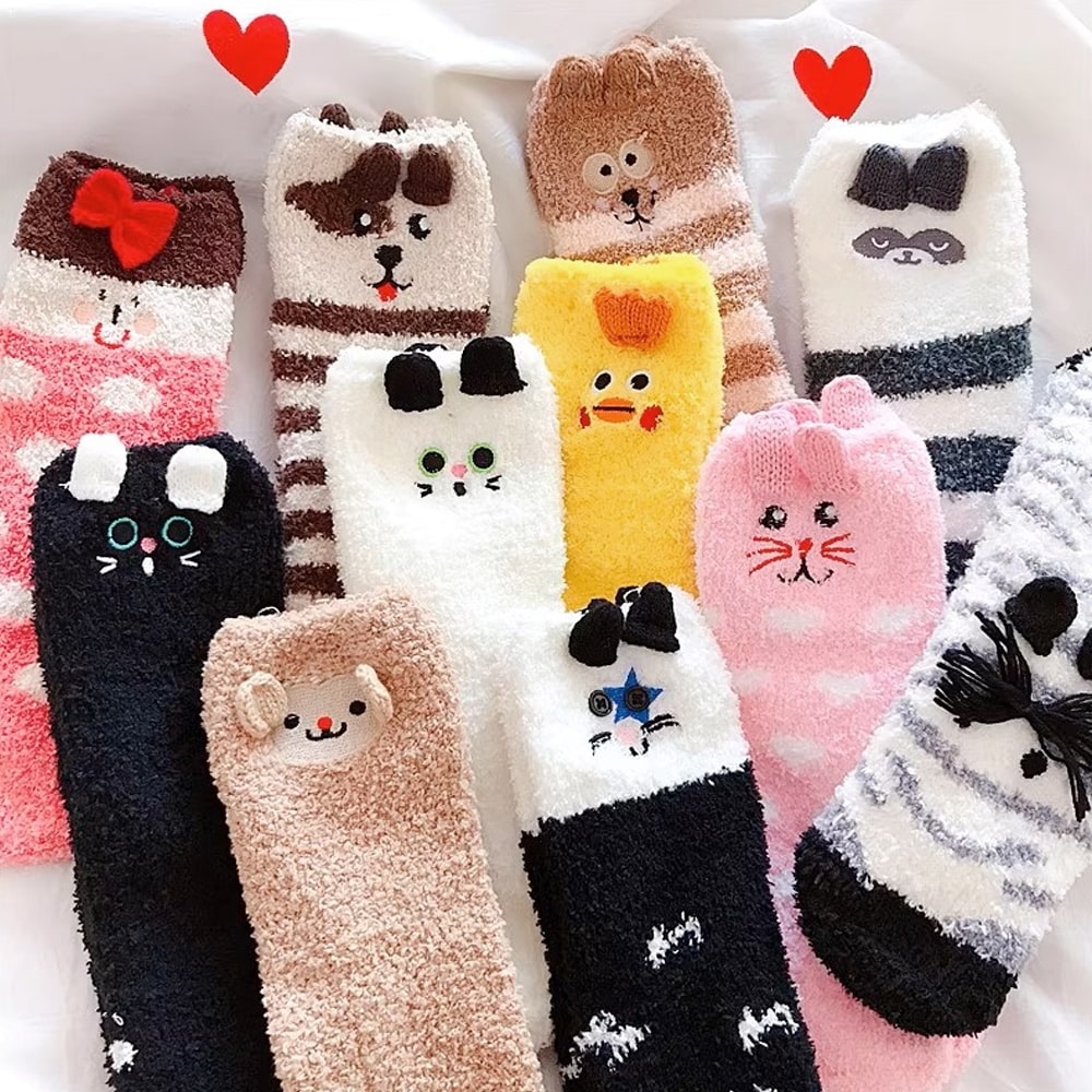 TEMU 여성용 플러시 코랄 겨울 보온 양말 5켤레 세트 - 포근한 미드컬프/앵클 길이 소프트 한국 스타일 수면 & 일상용 따뜻한 타이츠, 손세탁 가능, 귀여운 패턴 (건조 불가) - 추운 날씨용 대량 패키지