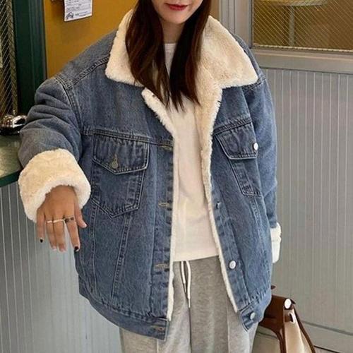 지고다그 여성용 겨울용 데님 양털 안감 자켓 보온 캐주얼 루즈핏 따뜻한 청자켓 아우터 CZK8087