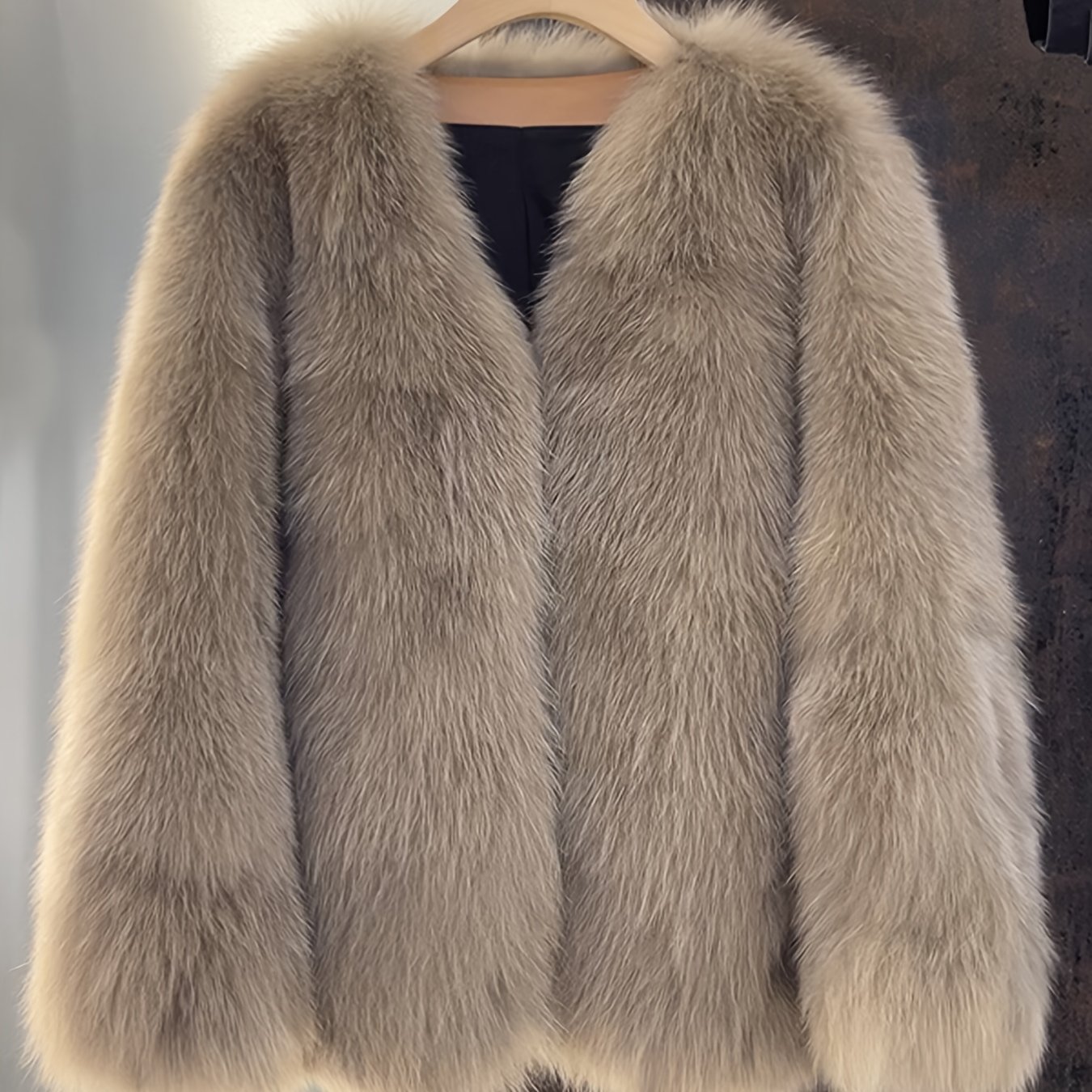 TEMU 여성용 우아하고 세련된 V넥 인조 퍼 코트 - 솔리드 컬러 - 패브릭 코트 - 패셔너블 인조 퍼 겨울 코트
