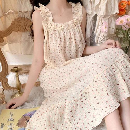 [라일리의류] Rly 여성 귀여운 미니 체리패턴 홈웨어 원피스잠옷 파자마