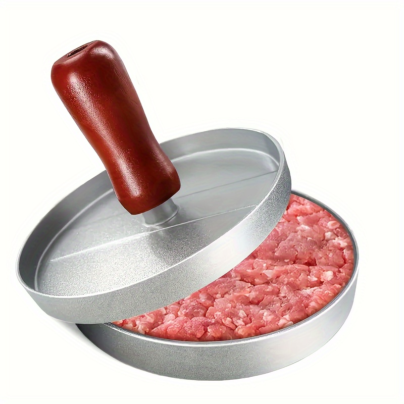 TEMU 수동 버거 프레스 1개 - 고기 및 야채를 그릴 때 사용하기 좋은 튼튼한 금속 몰드, 완벽한 패티, 만두 등을 만드는 데 적합한 인체공학적 손잡이 특징 - 집에서 사용하는 주방 아침 식사에 적합