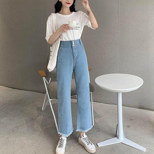 [셀럽하우스]데님 GXBM1344 와이드팬츠 연청 수술 청바지 여성 통큰 하의
