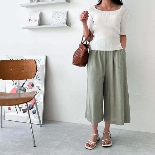 [셀럽하우스]여성 HNLB8695 여름 마 와이드통바지 8부 린넨바지 편한 마바지