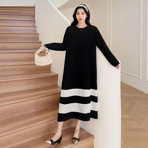 [셀러허브_여성트랜드패션]여자 배색 블랙 루즈핏 롱원피스 니트 카라 투톤