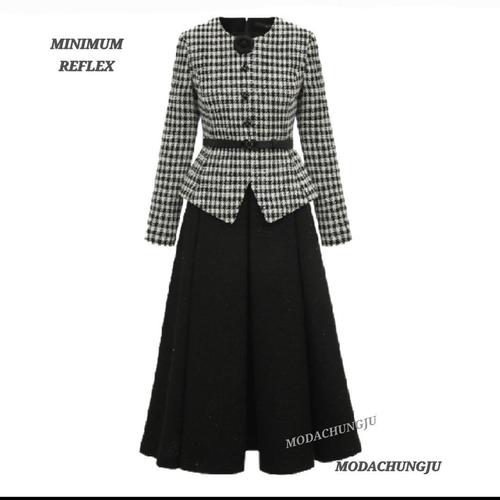 제로투올샵2 / 여성용 트위드 투피스 원피스 세트 봄 가을 화이트 S