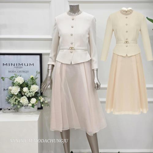 비비디아 Bibidia 여성 자켓 롱 원피스 슬림핏 하객룩 투피스 상하의세트(S~2XL) 5363