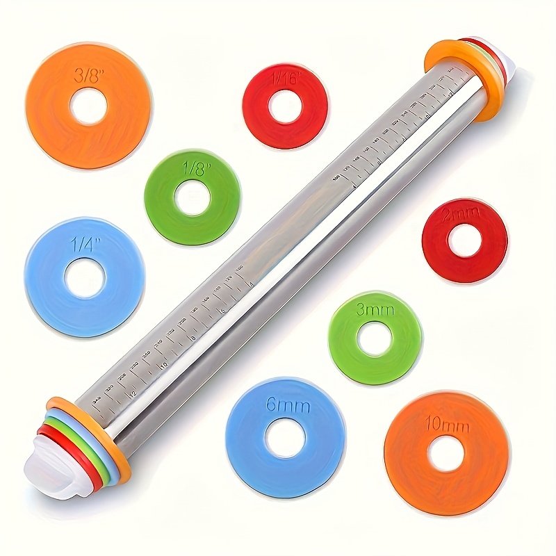 TEMU 1pc 조절 가능한 스테인레스 스틸 롤링 핀, 두께 스케일이 있는 도우 및 페이스트 준비용