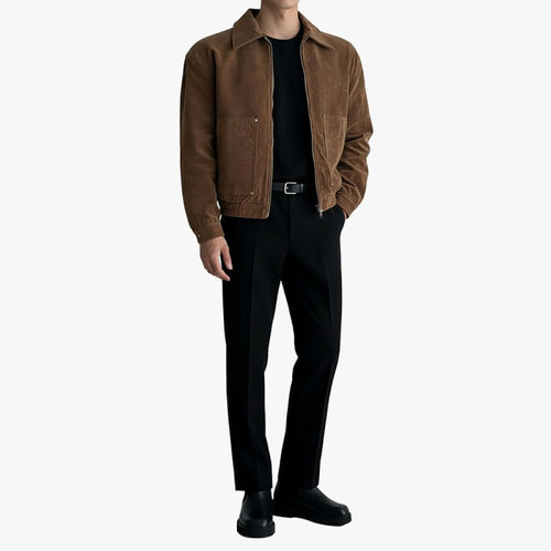 [모노폴로지]투웨이 세무 스웨이드 캐주얼 오버핏 크롭 지퍼 블루종 트러커 카라 절개 자켓 2color