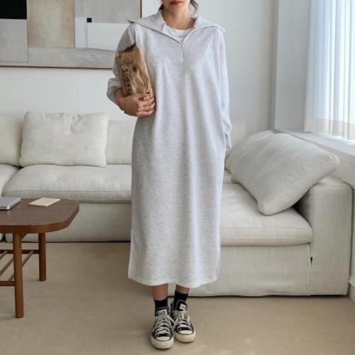 [옷자락]여자 겨울 포근 기모 3컬러 트레이닝 후드 롱원피스