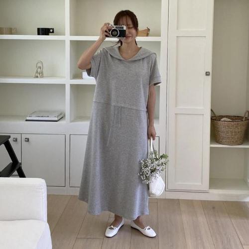 [에이치플러스몰]여성 그레이 슬림핏 후드 롱 원피스 트레이닝