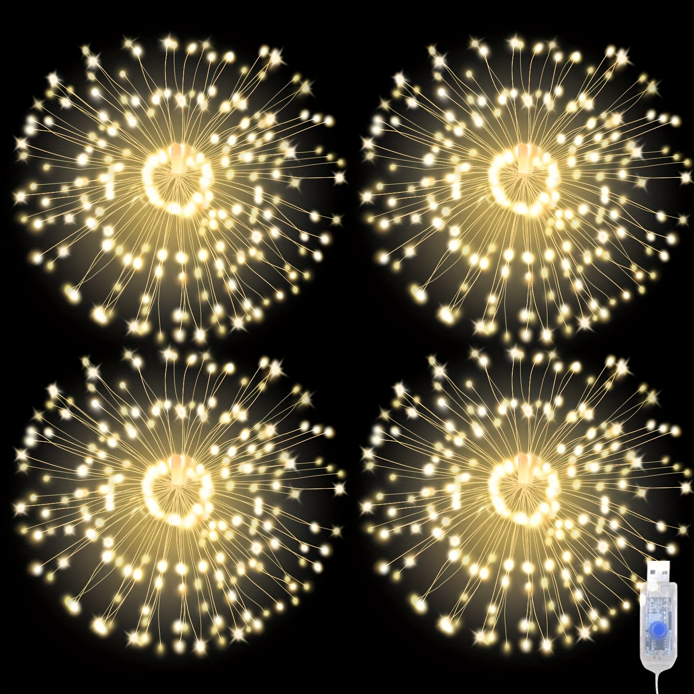TEMU 180/360 LED 야외 걸이형 별 폭발 조명, USB 전원 요정 불꽃놀이 조명, 8가지 깜박임 모드, 마당, 파티오, 가정, 결혼식 및 크리스마스 장식에 적합.