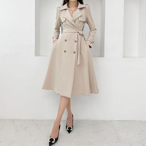 [옷자락]여성 클래식 가을 카라넥 더블 트렌치 외투