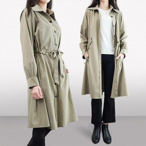 여성 클래식 가을 카라넥 더블 트렌치 외투