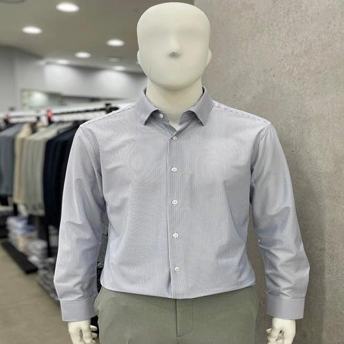 [트루젠]남자 신축성 좋은 긴팔 네이비 스트라이프 정장 와이셔츠 남방