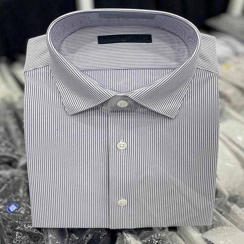 [트루젠]차콜 스트라이프 기본핏 스판 히든버튼 드레스셔츠