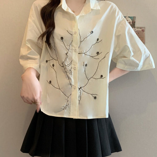보니제이 / 보니제이 카라넥 반팔 여름 트리 포인트 무늬 베이지