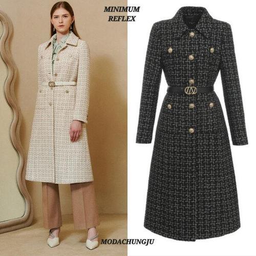 로미온 여성 트위드 롱자켓 가을 코트