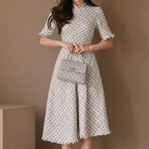 [엄지척]여성 반팔 트위드 미디원피스 플레어원피스 롱원피스_19870320_667501