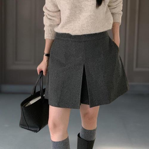 [신상오픈런]여성용 겨울 숏 팬츠 뒷밴드 와이드 앞트임 스커트 바지