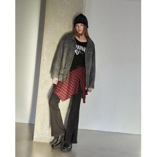 [양말드림]여성 기모 포켓 장식 밑단 트임 팬츠 121D4PT383_GY