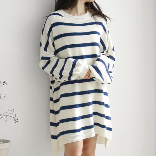 [유야]여성 단가라 긴팔 트임 니트 미니 원피스 -FOP0304- 겨울