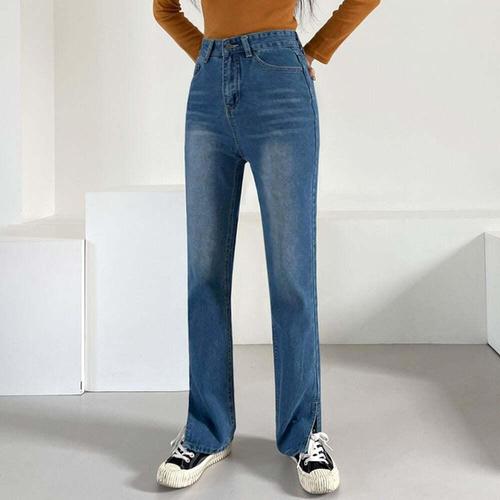앤드스타일 여성용 씬절개 트임 와이드 청바지 261456