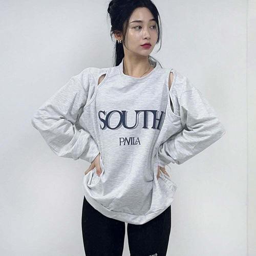 [셀럽하우스]오버핏 ODZC3730 사우스 레터링 어깨 트임 맨투맨 긴팔 티셔츠