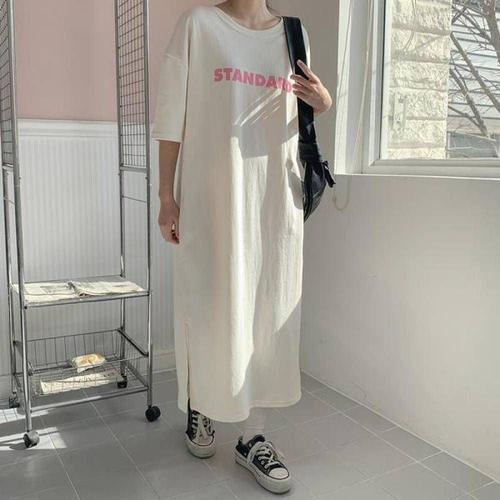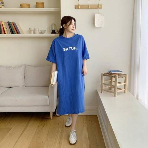 데님 트임 쉬폰 원피스 롱 레터링 롱니트 뷔스 WFKOINB