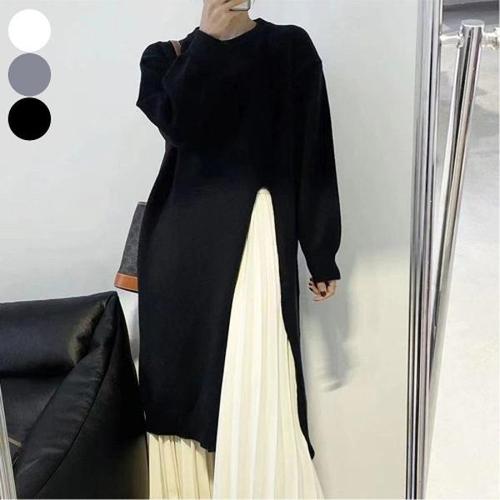 [엄지척]여자 하찌 트임 롱 니트 라운드넥 루즈핏 원피스_19677900_667501