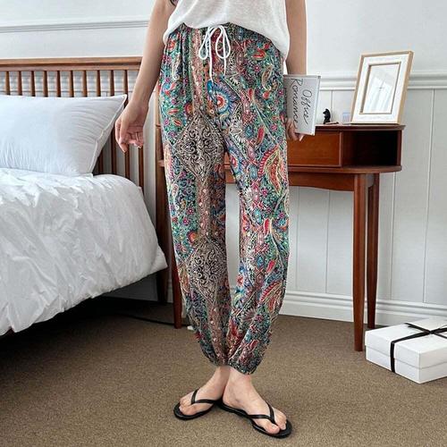 [셀럽하우스]특이한 UVQW8565 패턴 중년 여성 밴딩 바지 시원한 쿨조거팬츠