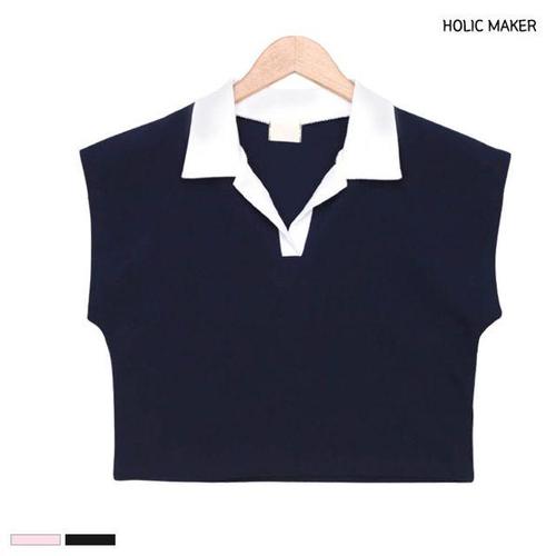 [셀럽하우스]홀릭메이커 XGZE9263 여자 카라티 크롭 캡소매 티셔츠 HNGT001