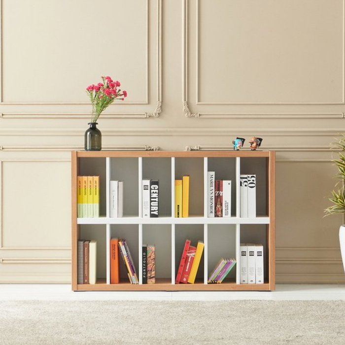 벨리카가구 점핑 3단 거실 낮은 가로책장 1200 수납함 전면 TV 와이드 책꽂이 북케이스