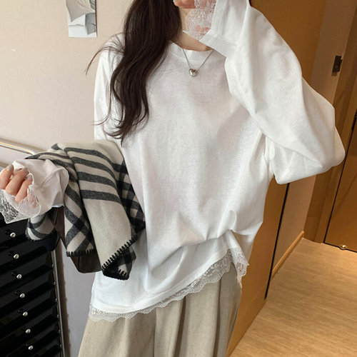 슈팅스타 / 레이스 스티치 화이트 센스 긴 소매 티셔츠 L -250069