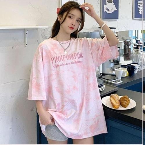 [엄지척]여성 물감 나염 영문 반팔티 데일리 캐주얼 티셔츠_19599449_667501