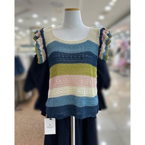 갤러리아_부루앤쥬디 프릴소매컬러단가라니트 BBRHPO115B