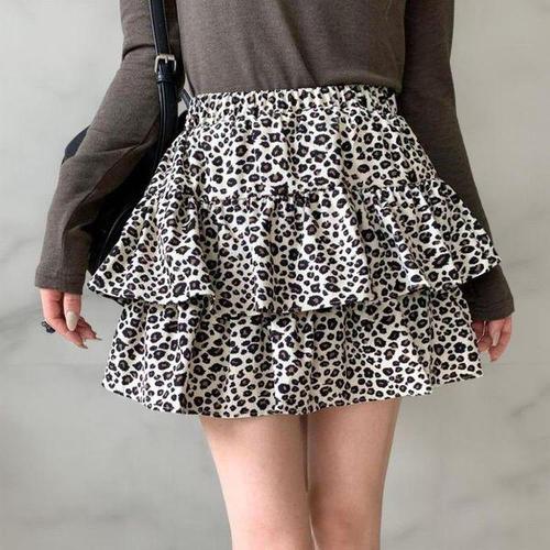 [다잇템]여성 키치무드 티어드 호피 프릴 쁘띠 스커트
