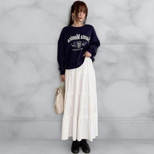 [다잇템]여자 고무줄 치마 티어드 FW 롱 벨루어 치마