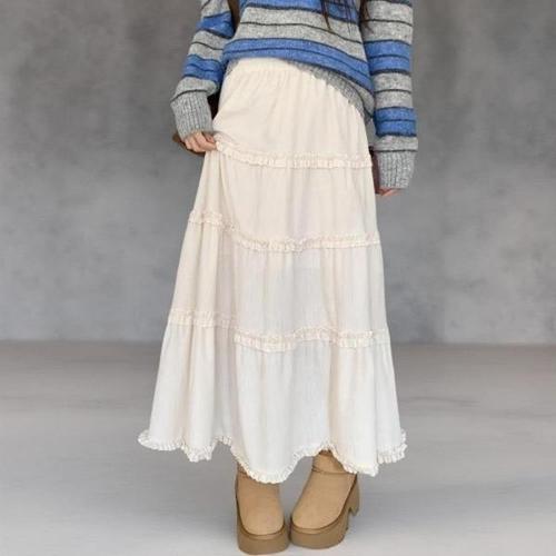 [다잇템]여성 레이스 고무줄 티어드 골덴 언발 스커트