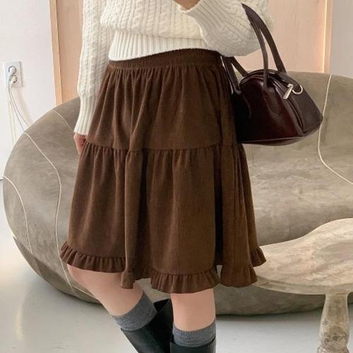 [다잇템][다잇템] 여자 프릴 티어드 FW 큰사이즈 골덴 후레아 스커트_24025918_588872