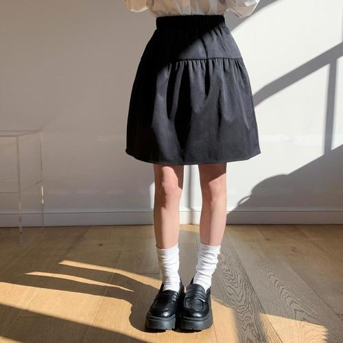 [옷자락]여자 봄여름 가벼운 셔링 티어드 밴딩 미니스커트