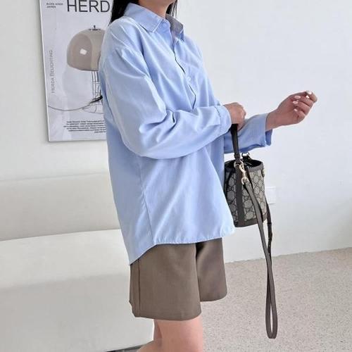 [다잇템]여성 단가라 파란색 베이직 롱 여유핏 셔츠