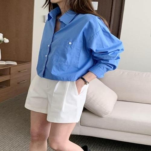 [다잇템]여자 단가라 롱 여유핏 베이직 파란색 남방